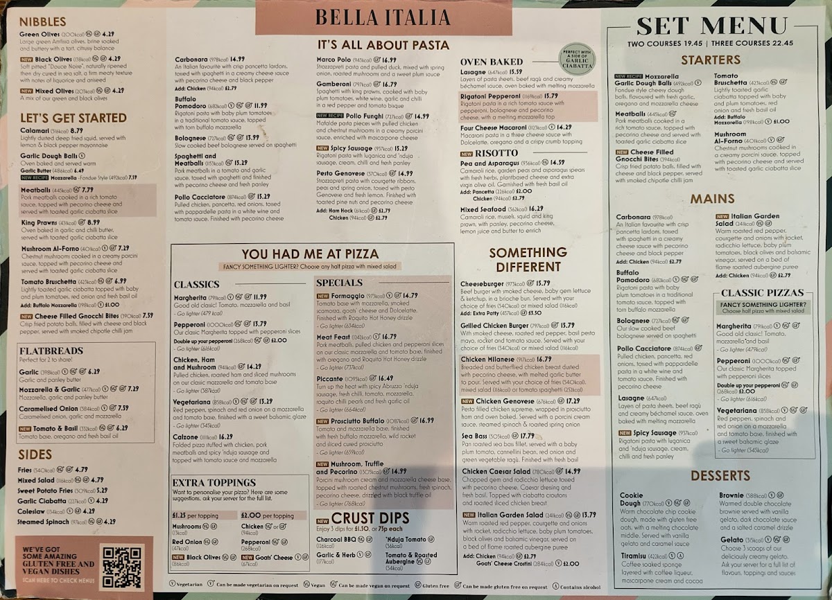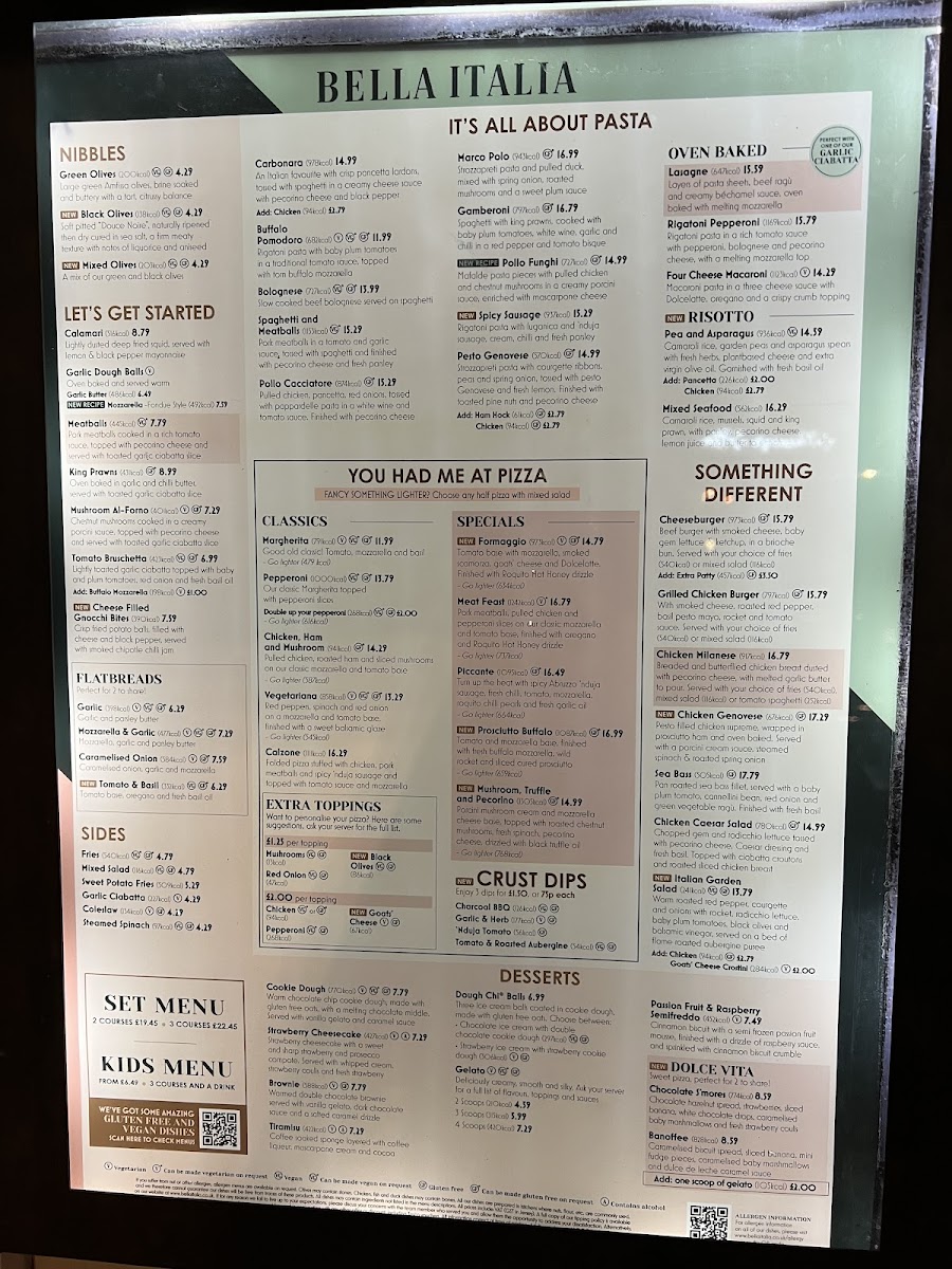 In conclusion, Bella Italia - Queensway 110 offers a superb Italian dining experience in a great location, with a menu that caters to a variety of tastes. For more information about their full menu and services, be sure to visit the restaurant’s website.